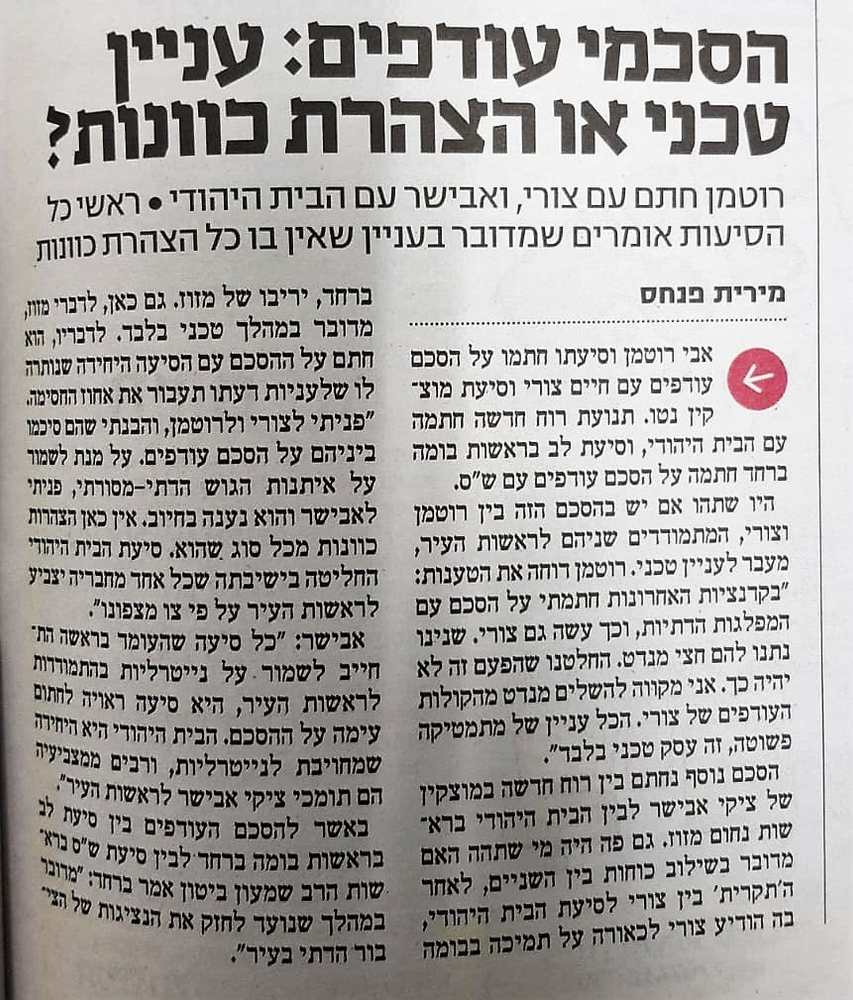 הצדדים הגיעו להבנות שיאפשרו ריצה משותפת במסגרת בלוק טכני, והם מקווים לצרף לרשימה גם את הבית היהודי.
