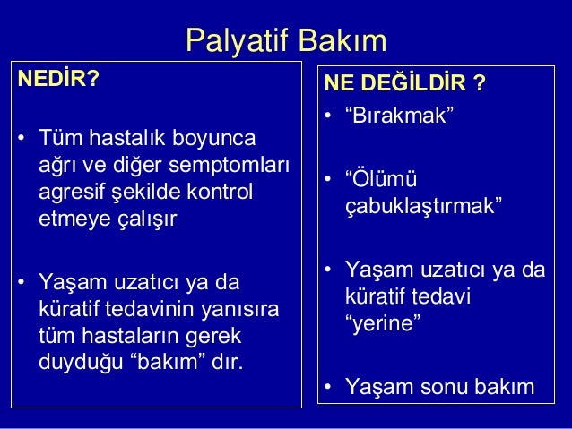 for "Palyati̇f Bakim Nedi̇r / 2017 Ders Palyati F Destek Bakim / Palyatif bakım, ciddi hastalıklarla ilişkili semptomları hafifletmeyi ve hastanın yaşam kalitesini iyileştirmeyi amaçlayan tedavidir."